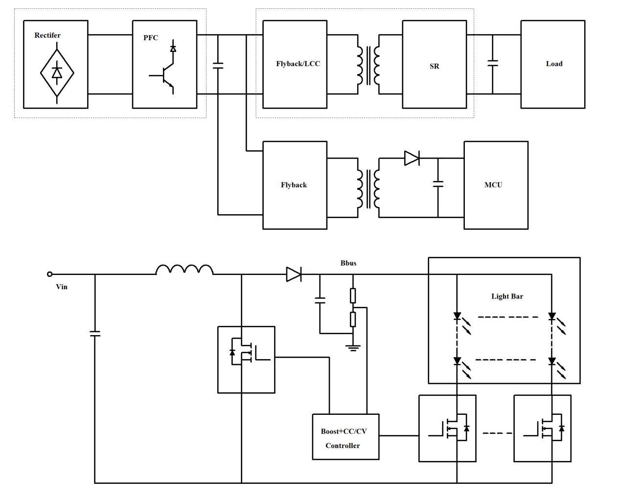 彩电液晶屏的背光照明系统由发光部件、导光板和背光电源构成。背光电源功率一般为100-500W,其作用就是将市电的交流电压转换成12V的直流电压输出,从而向显示器供电。一般拓扑结构会采用PFC、LLC、SR、Falyback、BOOST+CC/CV拓扑等。江苏意昂官方网站-意昂(中国)能提供不同表面贴装的高压和低压MOSFET,满足整机的轻便、能效高的需求。